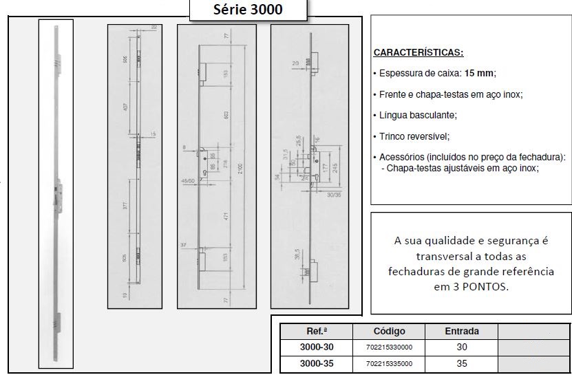 Fechaduras de embutir 3 pontos para perfis metálicos