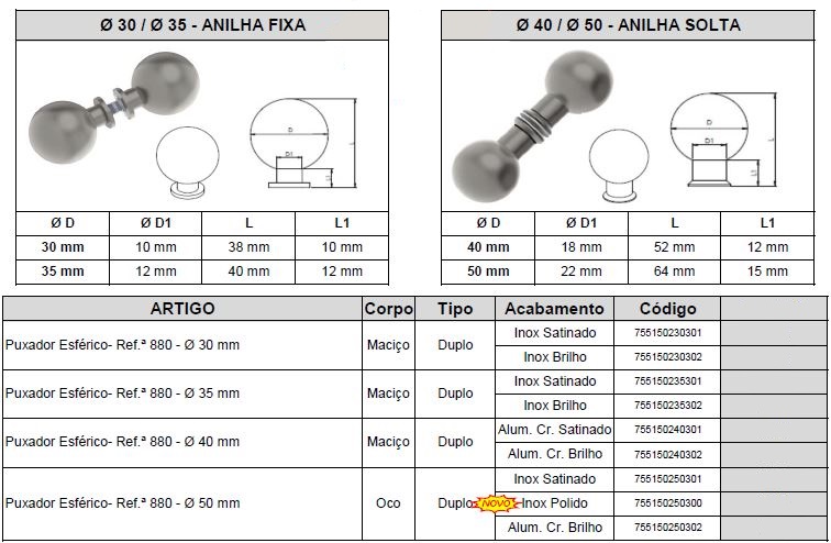 Puxadores esféricos